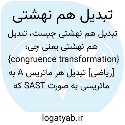 {congruence transformation} [ریاضی] تبدیل هر ماتریس A به ماتریسی به صورت SAST که در آن S ناتکین است و ST ترانهادۀ S است