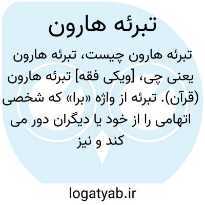 [ویکی فقه] تبرئه هارون (قرآن). تبرئه از واژه «برا» که شخصی اتهامی را از خود یا دیگران دور می کند و نیز خداوند، کسی را از آنها مبرا می کند، برداشت شده است. جواب هارون برای تبرئه خودش در سوره طه و اعراف آمده است.