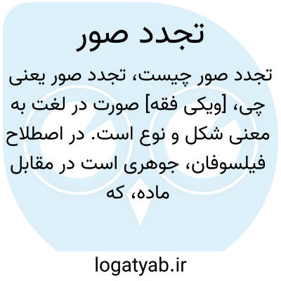 در اصطلاح فیلسوفان، جوهری است در مقابل ماده، که بر خلاف آن، بالفعل بوده و تمام آثار و خواصی که در انواع اجسام دیده می شود ناشی از آن می باشد و چیزی است که مطلقا اشیاء توسط آن از یکدیگر متمایز می شوند. هیچ صورتی نیست که بدون ماده موجود باشد همانطور که هیچ ماده ای بدون صورت تحقق نمی یابد. زیرا صورت از نوع اموری است که باید در چیز دیگری حلول کنند و ممکن نیست که بدون ماده و محل، موجود باشد. همچنانکه ماده نیز قوه و استعداد محض است واز خود هیچ فعلیتی ندارد و بدون فعلیت، ممکن نیست که شیئی موجود شود. پس باید فعلیتی داشته باشد و فعلیت آن نیز بدون صورت حاصل نمی شود. بنابراین باید صورتی در آن حلول کند و با آن ترکیب شود تا با این ترکیب، ماده فعلیت یابد. اگر شیئ خارجی باشد، صورت آن خارجی می شود و اگر ذهنی باشد صورت آن نیز ذهنی می شود. تجدد نیز عبارتست از نو شدن یک شیء.