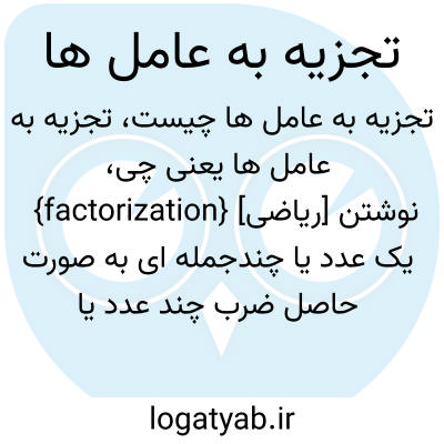 {factorization} [ریاضی] نوشتن یک عدد یا چندجمله ای به صورت حاصل ضرب چند عدد یا چندجمله ای متـ. عامل یابی