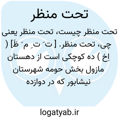 تحت منظر. [ ت َ ت ِ م َ ظَ] ( اِخ ) ده کوچکی است از دهستان مازول بخش حومه شهرستان نیشابور که در دوازده هزارگزی شمال خاوری نیشابور قرار دارد. دامنه معتدل است و 27 تن سکنه دارد. آب آن از چشمه و محصول آن غلات و شغل اهالی زراعت و گله داری است. راه مالرو دارد و از نزدیکی تقی آباد اتومبیل میتوان برد. ( از فرهنگ جغرافیایی ایران ج 9 ).