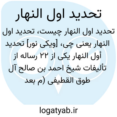 [ویکی نور] تحدید أول النهار یکی از 22 رساله از تألیفات شیخ احمد بن صالح آل طوق القطیفى (م بعد 1245 ق) است که در مجموعه ای با نام رسائل آل طوق القطیفی به چاپ رسیده است.