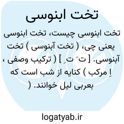 ( تخت آبنوسی ) تخت آبنوسی. [ ت َ ت ِ ] ( ترکیب وصفی، اِ مرکب ) کنایه از شب است که بعربی لیل خوانند. ( برهان ). کنایه از شب باشد. ( انجمن آرا ) ( از آنندراج ). شب. ( فرهنگ رشیدی ).