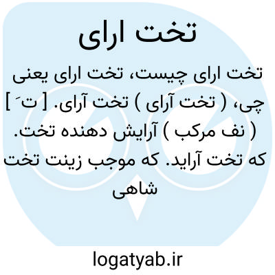( تخت آرای ) تخت آرای. [ ت َ ] ( نف مرکب ) آرایش دهنده تخت. که تخت آراید. که موجب زینت تخت شاهی شود:
