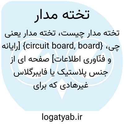 {circuit board, board} [رایانه و فنّاوری اطلاعات] صفحه ای از جنس پلاستیک یا فایبرگلاس غیرهادی که برای قرار دادن و متصل ساختن مجموعه ای از تراشه ها و دستگاه های دیگر، در رایانه به کار رود متـ. تخته 1