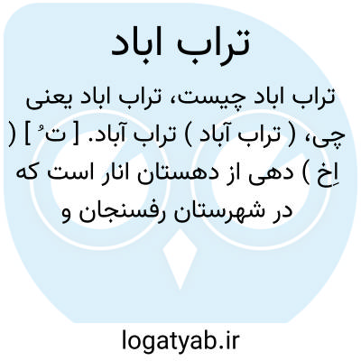 ( تراب آباد ) تراب آباد. [ ت ُ ] ( اِخ ) دهی از دهستان انار است که در شهرستان رفسنجان و هشتادوسه هزارگزی شمال باختری رفسنجان و چهارهزارگزی شوسه رفسنجان به یزد قرار دارد. جلگه ای سردسیر است و 70 تن سکنه دارد. آب آن از قنات و محصول آنجا غلات و پنبه، شغل اهالی زراعت است و راه فرعی دارد. ( از فرهنگ جغرافیائی ایران ج 8 ).