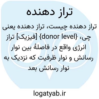 {donor level} [فیزیک] تراز انرژی واقع در فاصلۀ بین نوار رسانش و نوار ظرفیت که نزدیک به نوار رسانش بعد از تراز پذیرنده قرار دارد
