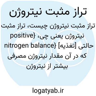 {positive nitrogen balance} [تغذیه] حالتی که در آن مقدار نیتروژن مصرفی بیشتر از نیتروژن دفع شده است