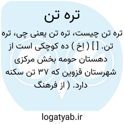تره تن. [ ] ( اِخ ) ده کوچکی است از دهستان حومه بخش مرکزی شهرستان قزوین که 37 تن سکنه دارد. ( از فرهنگ جغرافیایی ایران ج 1 ).