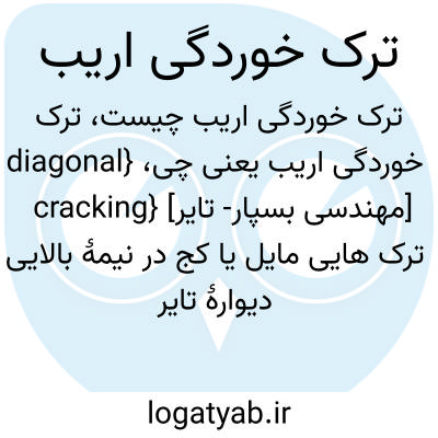 {diagonal cracking} [مهندسی بسپار- تایر] ترک هایی مایل یا کج در نیمۀ بالایی دیوارۀ تایر