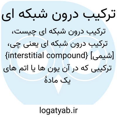 {interstitial compound} [شیمی] ترکیبی که در آن یون ها یا اتم های یک مادۀ نافلز فضاهای خالی حفره گون را در شبکۀ بلوریِ فلز پر می کنند