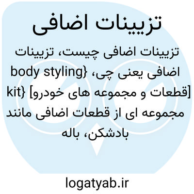 {body styling kit} [قطعات و مجموعه های خودرو] مجموعه ای از قطعات اضافی مانند بادشکن، باله و جز آن که برای افزایش زیبایی یا بهبود عملکرد یا بازدهی بیشتر خودرو به آن اضافه می شود