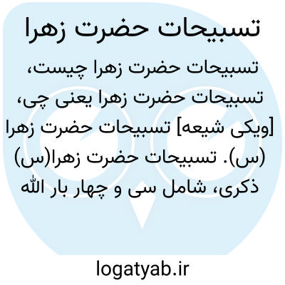 [ویکی اهل البیت] تسبیحات حضرت زهرا (س). این تسبیحات شامل 34 مرتبه الله اکبر,33 مرتبه الحمد لله و 33 مرتبه سبحان الله است که پیامبر اکرم(ص) آن را به حضرت زهرا آموختند.