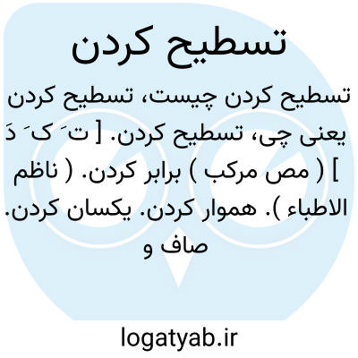 تسطیح کردن. [ ت َ ک َ دَ ] ( مص مرکب ) برابر کردن. ( ناظم الاطباء ). هموار کردن. یکسان کردن. صاف و مسطح کردن زمین و جز آن. و رجوع به تسطیح و تسطح در همین لغت نامه شود. || علم تسطیح کره. دانستن چگونگی نقل کره است به سطح با حفظ خطها و دائره ها که بر آن رسم شده است و چگونگی نقل این دائره ها از دائره بخط. ( از کشف الظنون ). رجوع به کشاف اصطلاحات الفنون شود. از جمله کتابها که در این علم نوشته شده کتاب تسطیح الکرة منسوب به بطلمیوس است.