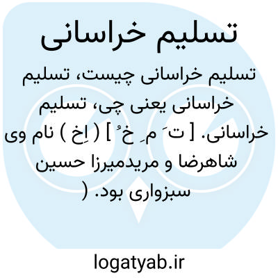 تسلیم خراسانی. [ ت َ م ِ خ ُ ] ( اِخ ) نام وی شاهرضا و مریدمیرزا حسین سبزواری بود. ( از الذریعه ج 9 ص 171 ).