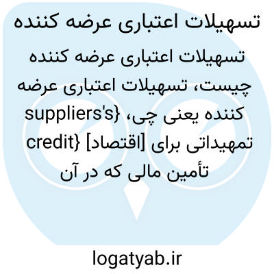 {suppliers's credit} [اقتصاد] تمهیداتی برای تأمین مالی که در آن صادرکنندگان برای خریداران محصول صادراتی خود منابع اعتباری فراهم می کنند متـ. تسهیلات عرضه کننده
