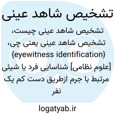 {eyewitness identification} [علوم نظامی] شناسایی فرد یا شیئی مرتبط با جرم ازطریق دست کم یک نفر شاهد که فرد یا شیء را در یک یا چند صحنۀ جرم مشاهده کرده باشد