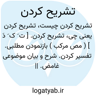 تشریح کردن. [ ت َ ک َ دَ ] ( مص مرکب ) بازنمودن مطلبی. تفسیر کردن. شرح و بیان موضوعی غامض. || ( اصطلاح پزشکی ) کالبدشکافی. رجوع به تشریح شود.