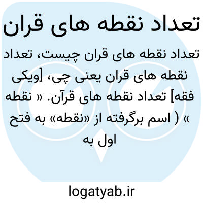 [ویکی فقه] تعداد نقطه های قرآن. « نقطه » ( اسم برگرفته از «نقطه» به فتح اول به معنای نقطه زدن) نشانه ای است مانند گره بسیار کوچک که آن را «خجک» می گویند و به منظور جدا کردن حروف مشابه، رو یا زیر حروف معجم مثل «تا، با، جیم و خا» می گذارند.