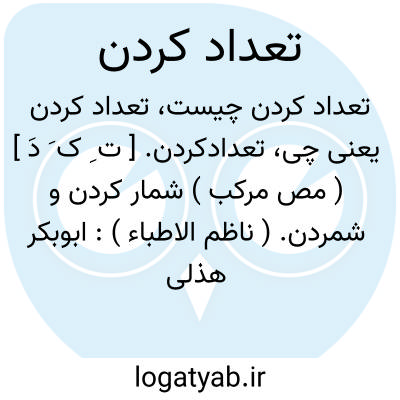 تعدادکردن. [ ت ِ ک َ دَ ] ( مص مرکب ) شمار کردن و شمردن. ( ناظم الاطباء ): ابوبکر هذلی تعداد اشراف بصره و فقها بصره و اصحاب رسول که در آنجا بودند کرد. ( تاریخ قم ص 294 ).