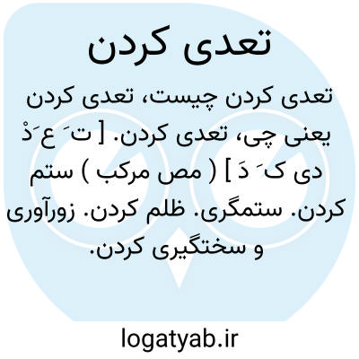 تعدی کردن. [ ت َ ع َدْ دی ک َ دَ ] ( مص مرکب ) ستم کردن. ستمگری. ظلم کردن. زورآوری و سختگیری کردن. درازدستی کردن: در منازعتی که میرفت میان بختیار و عضدالدوله، بی ادبیها و تعدی ها و تهورها کرد. ( تاریخ بیهقی چ ادیب ص 191 ). خداوند آنچه بایست فرمود در آن تعدی که وی کرد. ( تاریخ بیهقی ایضاً ص 636 ). تا تعدی نکند از نفسی بیشتر. ( تفسیر ابوالفتوح ج 1 ص 272 ). فلان عامل را که فرستاده بولایت تعدی نکندی. ( مجالس سعدی ص 22 ). و رجوع به تعدی شود.