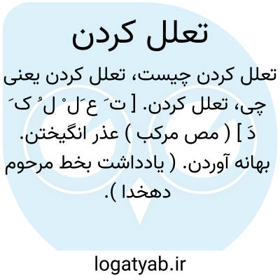 تعلل کردن. [ ت َ ع َل ْ ل ُ ک َ دَ ] ( مص مرکب ) عذر انگیختن. بهانه آوردن. ( یادداشت بخط مرحوم دهخدا ). تأخیر کردن. سستی کردن. و رجوع به تعلل و ماده قبل شود.