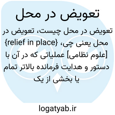 {relief in place} [علوم نظامی] عملیاتی که در آن با دستور و هدایت فرمانده بالاتر تمام یا بخشی از یک یگان با یگان دیگری در منطقه تعویض می شود