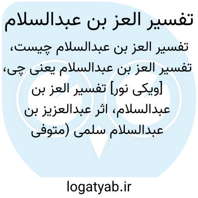 [ویکی نور] تفسیر العز بن عبدالسلام، اثر عبدالعزیز بن عبدالسلام سلمى (متوفى 660ق)، با تحقیق و تعلیق احمد فتحى عبدالرحمن، تفسیرى است مختصر از قرآن کریم که به زبان عربى و در نیمه اول قرن هفتم هجرى، نوشته شده است.