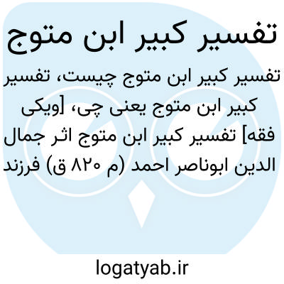 [ویکی فقه] تفسیر کبیر ابن متوج (ابهام زدایی). تفسیر کبیر ابن متوج ممکن است عنوان برای کتاب ها و تفاسیر ذیل باشد: • تفسیر کبیر ابن متوج (جمال الدین احمد)، اثر جمال الدین ابوناصر احمد (م ۸۲۰ ق) فرزند عبداللّه بن متوج بحرانی معروف به ابن متوج، از مفسران شیعه• تفسیر کبیر ابن متوج (فخرالدین احمد)، اثر فخرالدین احمد (م ق ۸۳۶ ق) فرزند عبداللّه متوج بحرانی، از مفسران شیعه، نوه جمال الدین احمد