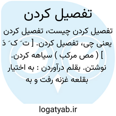 تفصیل کردن. [ ت َ ک َ دَ ] ( مص مرکب ) سیاهه کردن. نوشتن. بقلم درآوردن: به اختیار بقلعه غزنه رفت و به حبس رضا داد و اسباب تجمل تفصیل کرد و به سلطان فرستاد. سلطان از این حرکت در خشم شد و او را به جنایت خرابی ولایت... مؤاخذه کرد. ( ترجمه تاریخ یمینی چ 1 تهران ص 360 ).