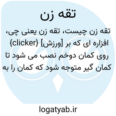 {clicker} [ورزش] افزاره ای که بر روی کمان دوخم نصب می شود تا کمان گیر متوجه شود که کمان را به اندازۀ کافی کشیده است