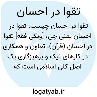 [ویکی فقه] تقوا در احسان (قرآن). تعاون و همکاری در کارهای نیک و پرهیزگاری یک اصل کلی اسلامی است که سراسر مسائل اجتماعی و حقوقی و اخلاقی و سیاسی را در بر می گیرد.