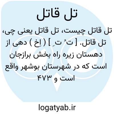 تل قاتل. [ ت ُ ت ِ ] ( اِخ ) دهی از دهستان زیره راه بخش برازجان است که در شهرستان بوشهر واقع است و 473 تن سکنه دارد. ( از فرهنگ جغرافیایی ایران ج 7 ).