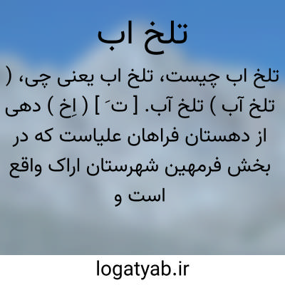 ( تلخ آب ) تلخ آب. [ ت َ ] ( اِخ ) دهی از دهستان فراهان علیاست که در بخش فرمهین شهرستان اراک واقع است و 1320 تن سکنه دارد. ( از فرهنگ جغرافیایی ایران ج 2 ).
