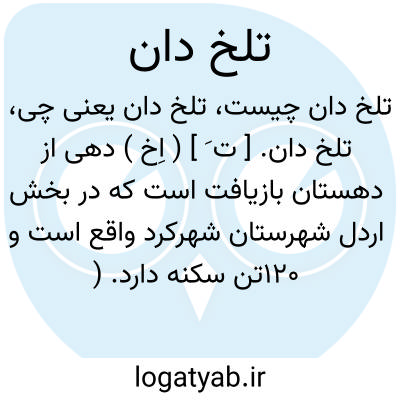 تلخ دان. [ ت َ ] ( اِخ ) دهی از دهستان بازیافت است که در بخش اردل شهرستان شهرکرد واقع است و 120تن سکنه دارد. ( از فرهنگ جغرافیایی ایران ج 10 ).