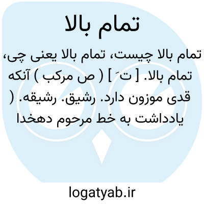 تمام بالا. [ ت َ ] ( ص مرکب ) آنکه قدی موزون دارد. رشیق. رشیقه. ( یادداشت به خط مرحوم دهخدا ). اسبکرار؛ تمام بالا شدن دختر. ( منتهی الارب ). رجوع به تمام و دیگر ترکیبهای آن شود.