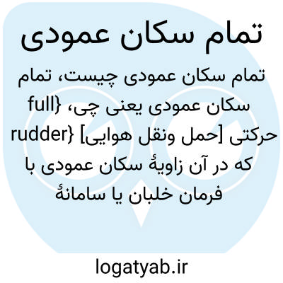 {full rudder} [حمل ونقل هوایی] حرکتی که در آن زاویۀ سکان عمودی با فرمان خلبان یا سامانۀ مراقبت پرواز تا آخرین حد خود تغییر می کند
