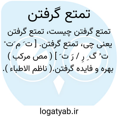تمتع گرفتن. [ ت َ م َت ْ ت ُ گ ِ رِ / رَ ت َ ] ( مص مرکب ) بهره و فایده گرفتن.( ناظم الاطباء ). تمتع یافتن. تمتع بردن: