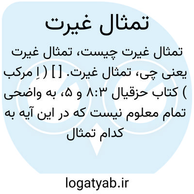 تمثال غیرت. [ ] ( اِ مرکب ) کتاب حزقیال 8:3 و 5، به واضحی تمام معلوم نیست که در این آیه به کدام تمثال اشاره می نماید الا اینکه می توان گفت که اشاره به تمثالی است که نزدیک مدخل دروازه ٔاورشلیم می گذاشتند که رؤیت آن اسباب هیجان غیرت داخلین می شد تا دلالت نماید براینکه عبادت تماثیل درین شهر آشکار و واضح گشته است. ( از قاموس کتاب مقدس ).