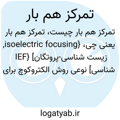 {isoelectric focusing, IEF} [زیست شناسی-پروتگان شناسی] نوعی روش الکتروکوچ برای جداسازی پروتئین ها براساس pH هم بار آنها که در آن pH از قبل تثبیت شده است