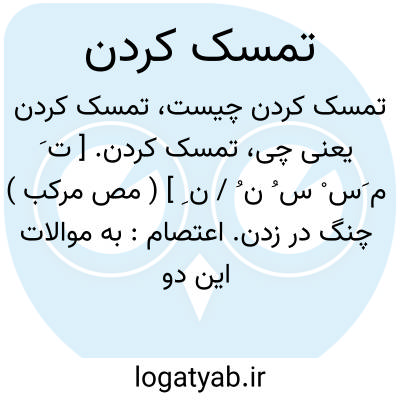 تمسک کردن. [ ت َ م َس ْ س ُ ن ُ / ن ِ ] ( مص مرکب ) چنگ در زدن. اعتصام: