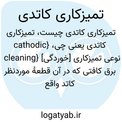 {cathodic cleaning} [خوردگی] نوعی تمیزکاری برق کافتی که در آن قطعۀ موردنظر کاتد واقع می شود
