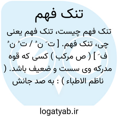 تنک فهم. [ ت َ ن ُ / ت ُ ن ُ ف َ ] ( ص مرکب ) کسی که قوه مدرکه وی سست و ضعیف باشد. ( ناظم الاطباء ):