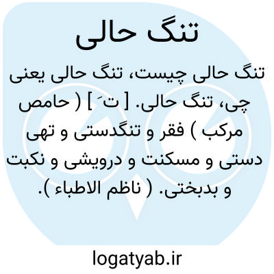 تنگ حالی. [ ت َ ] ( حامص مرکب ) فقر و تنگدستی و تهی دستی و مسکنت و درویشی و نکبت و بدبختی. ( ناظم الاطباء ). سختی. رنج:
