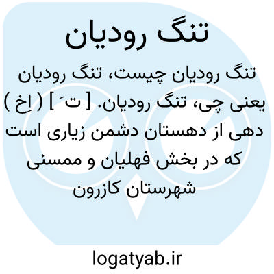 تنگ رودیان. [ ت َ ] ( اِخ ) دهی از دهستان دشمن زیاری است که در بخش فهلیان و ممسنی شهرستان کازرون واقع است و 365 تن سکنه دارد. ( از فرهنگ جغرافیایی ایران ج 7 ).