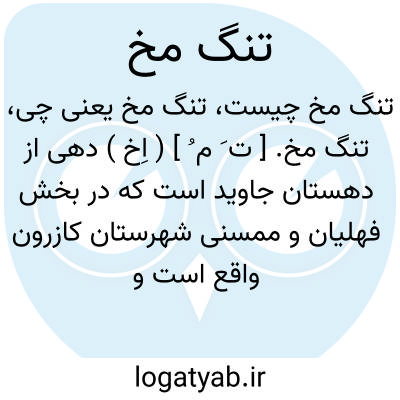 تنگ مخ. [ ت َ م ُ ] ( اِخ ) دهی از دهستان جاوید است که در بخش فهلیان و ممسنی شهرستان کازرون واقع است و 400 تن سکنه دارد. ( از فرهنگ جغرافیایی ایران ج 7 ).