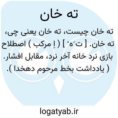 ته خان. [ ت َه ْ ] ( اِ مرکب ) اصطلاح بازی نرد خانه آخر نرد، مقابل افشار. ( یادداشت بخط مرحوم دهخدا ).