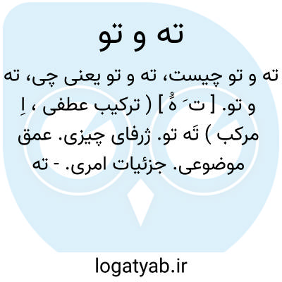 ته و تو. [ ت َ هَُ ] ( ترکیب عطفی، اِ مرکب ) تَه تو. ژرفای چیزی. عمق موضوعی. جزئیات امری.
