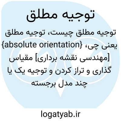 {absolute orientation} [مهندسی نقشه برداری] مقیاس گذاری و تراز کردن و توجیه یک یا چند مدل برجسته متناسب با نقاط واپایش زمینی
