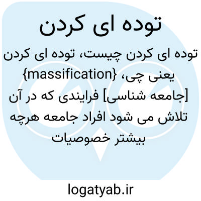 {massification} [جامعه شناسی] فرایندی که در آن تلاش می شود افراد جامعه هرچه بیشتر خصوصیات فردی خود را ازطریق فرایندهای فروکاهنده از دست بدهند و به توده ای یکدست و یکسان تبدیل شوند